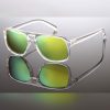 Det lækre glansfulde, smalle og transparente stel, samt de seje farverige spejlglas gør denne solbrille unik, trendy og er simpelthen lige hvad du manglede i din solbrille kollektion.