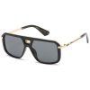 Glansfulde sorte Millionaire solbriller med sølv detaljer på fronten, top og siderne samt stænger.